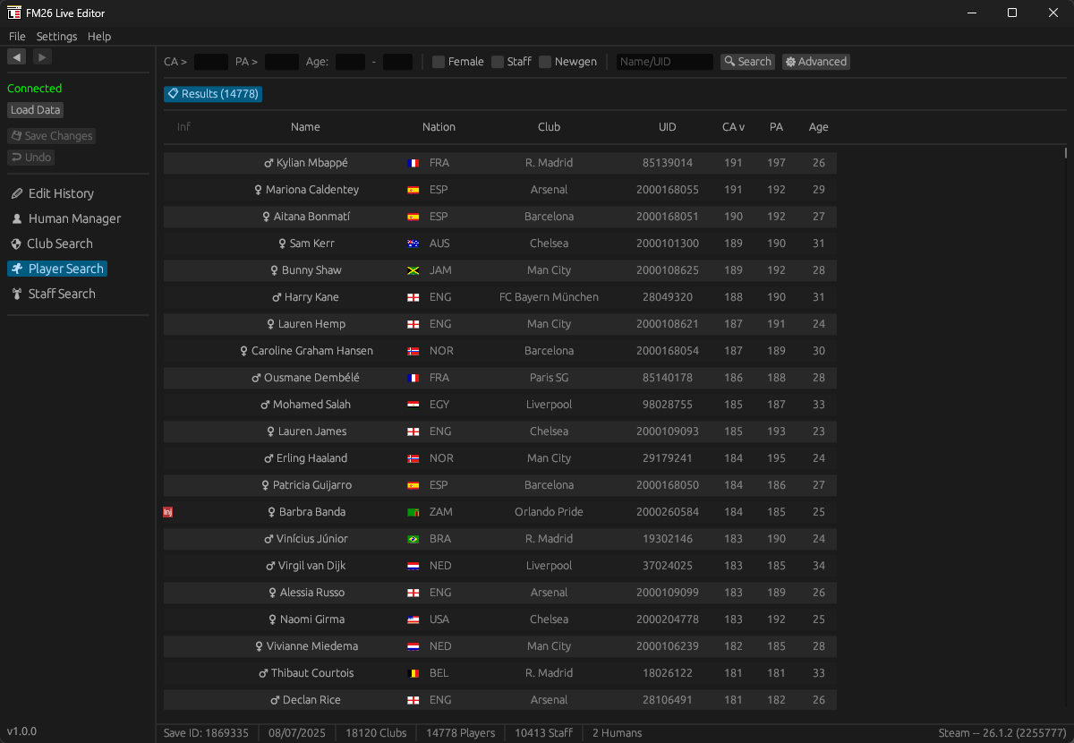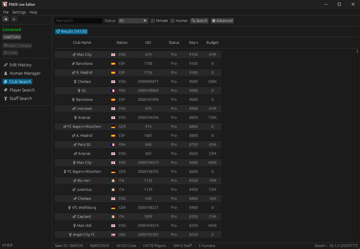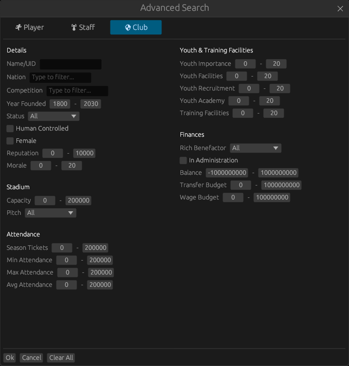✔ Full Advanced Search with overpowered filters✔ Live filtering - find any player, staff, or club instantly