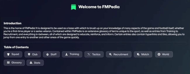 FM26 introduces FMPedia, an in-game guide and glossary. Use it to understand features, attributes, and mechanics without leaving the game.Don't Be Afraid to Restart