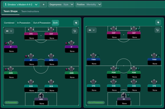 An attacking 4-4-2 with wing-backs on attack. Tested with Brøndby, made it to the Conference League final in season 1.