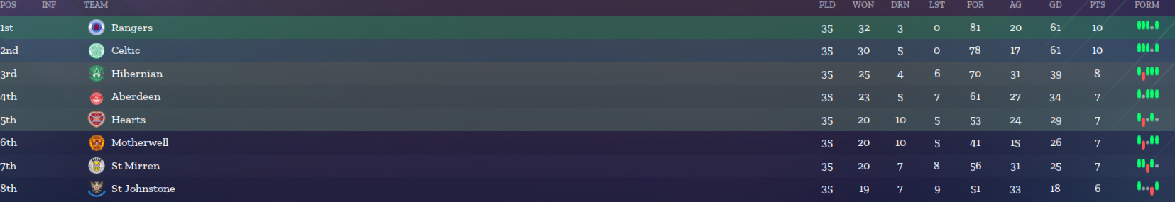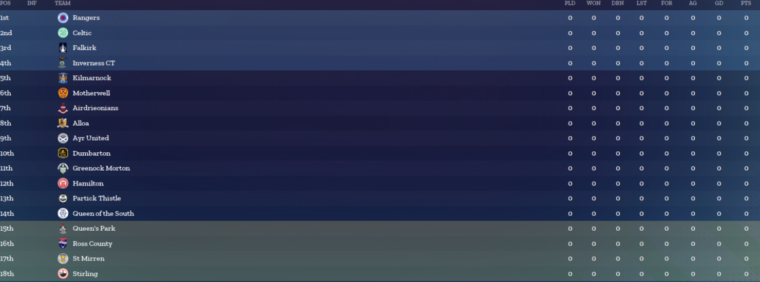 The Championship and Relegation Groups of the Scottish Super League now carry over 20% of Points from the League Phase instead of 10% - I'm mindful of increasing it further than this, because I do not want to create a situation where a club has already won the league mathematically before those stages have even begun.