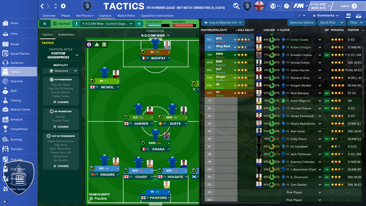 - Tactics Overview Panel (bigger pitch, subs bench on the left and information about previous matches with the opponent tweaked)