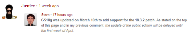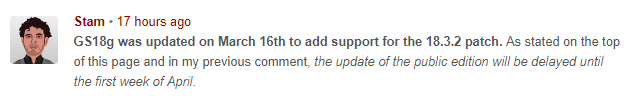 @Pacman_NUFC: GS18g is always updated within 24 hours after a new patch, so I'm not sure where "few days" came from.