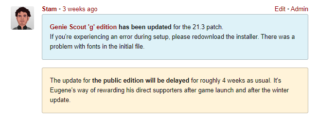 As usual, Genie Scout 21 comes in two editions: In order to get the "g" edition, you need to donate to Eugene.