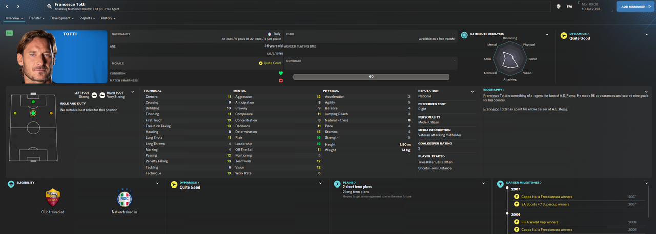 - Changed Francesco Totti from Non-Player to Non-Player/Player;