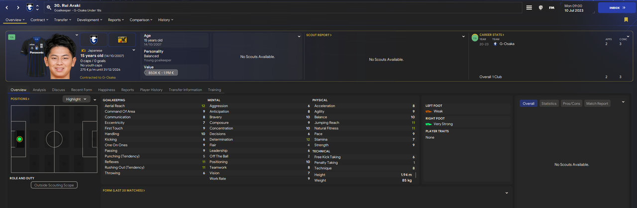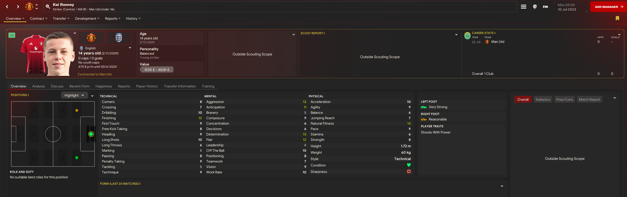 If you use the +2years for New Players (i think it will be available for v11.2) he will have CA upgraded. PA remains -9/-95.