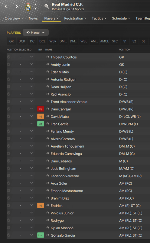 me98 theres not really a list but i think ive added most injuries until the start of the leagues. Premier League is the one that has most accurated info, but i've added a couple from Portugal and other leagues.
