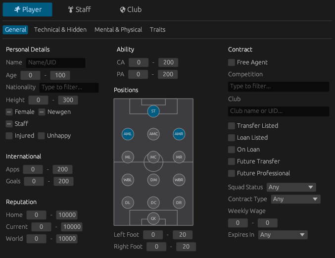 - Live Filtering: Search results appear instantly as you type and set your filters. Find any player, staff, or club without waiting for a single loading bar.