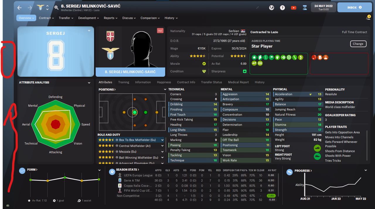 - Player Attributes, Analysis Polygons and Comparison Stars have been added to Scout Cards, as well as a Medical Overview.