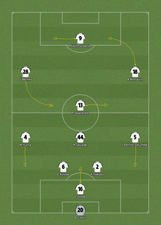 If you have a winger that can play as a striker too, you can try using the alternative version of the tactic shown on picture (b).