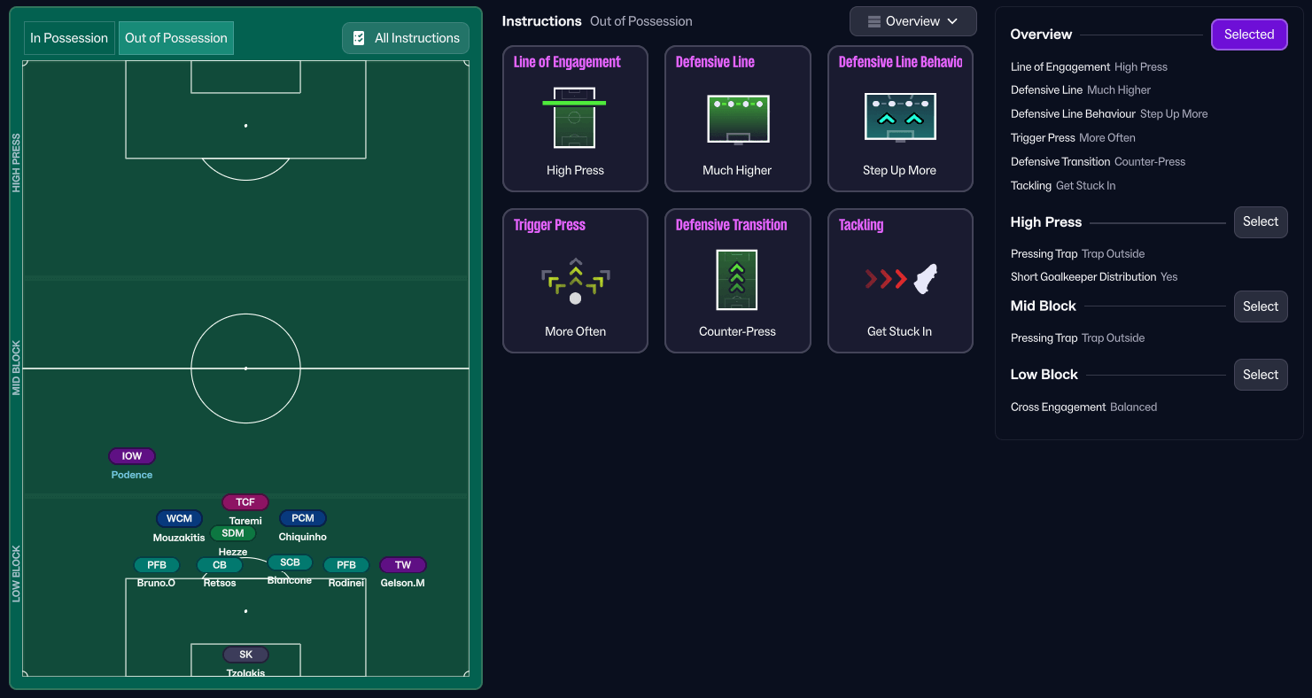FM26’s new tactical system (separate in- and out-of-possession shapes, smarter role behaviours, and dynamic width logic) finally makes it possible to rebuild PSG’s 2024-25 positional structure — a system built on order, movement, and total control.