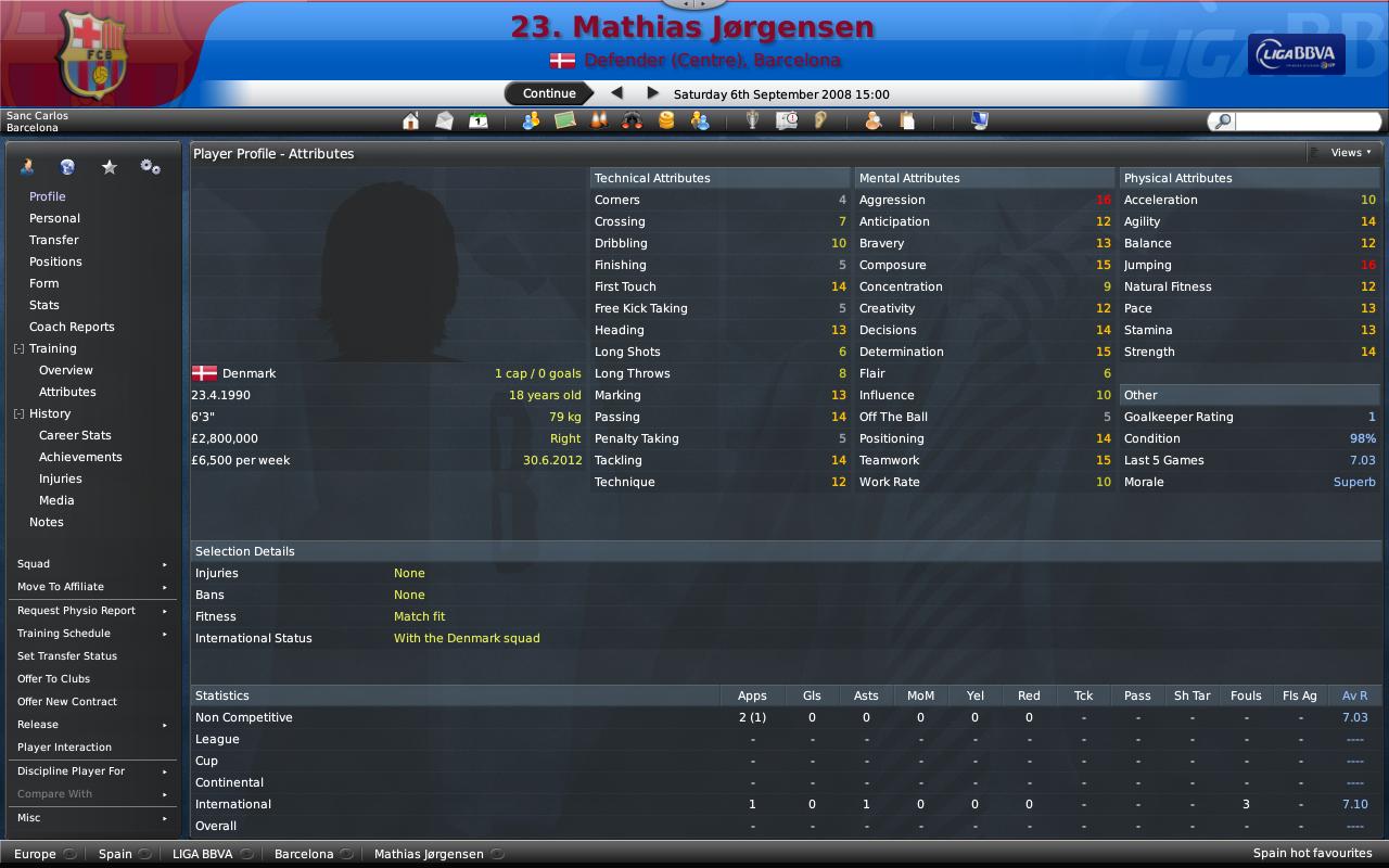Great left back, pacey. He's superb! Sample season: 42 games / 7.67 Av Rating / 5 Goals / 18 Assists / 8 MoM