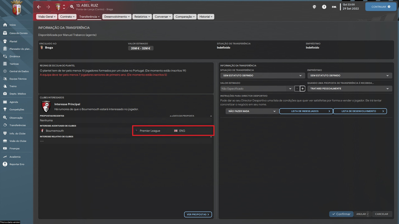 On the player transfer window is not showing if the club is interested on transfer or loan