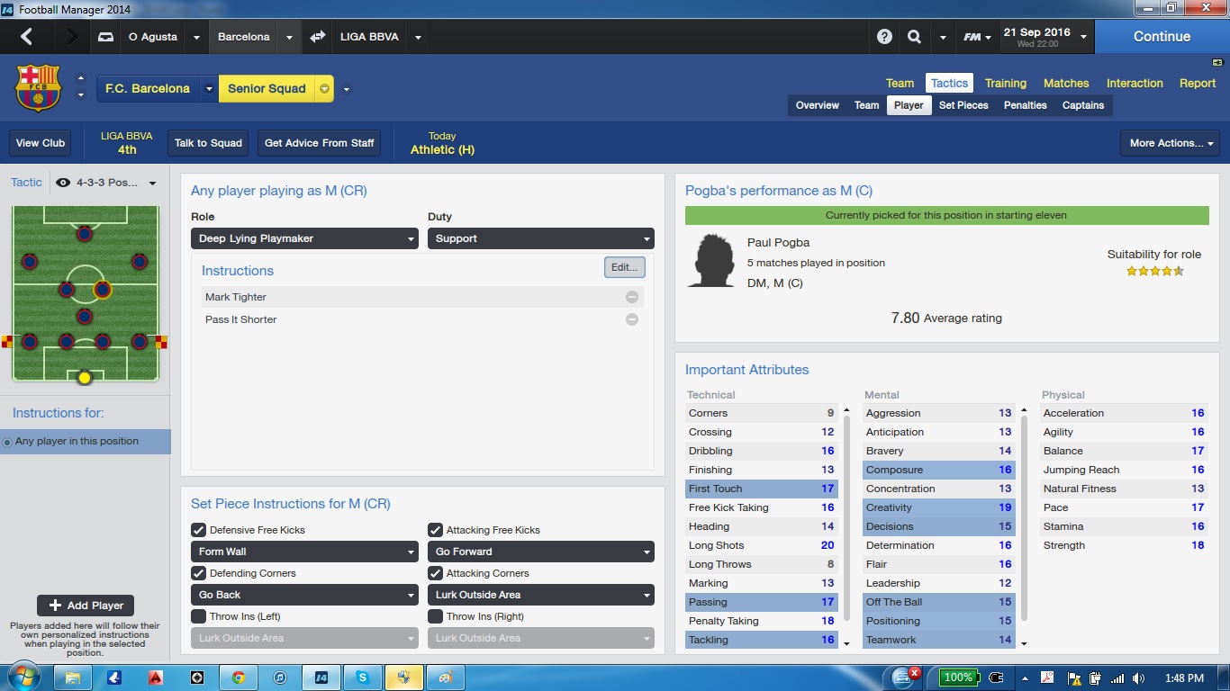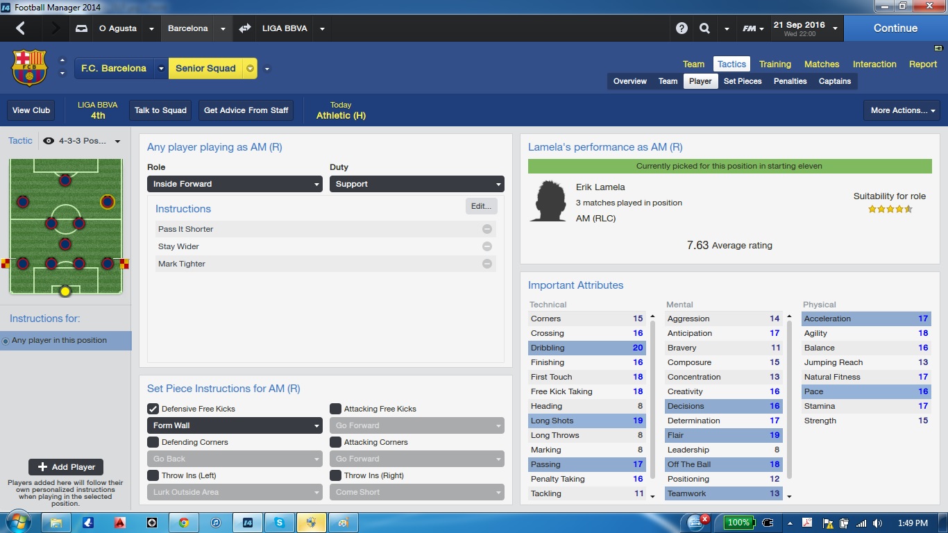 PS. The adaptability of my team on this particular tactics was also unbelievable. It was at about 70% after 4 matches, while the other one was still on 20% after all the preparation and games June-October.