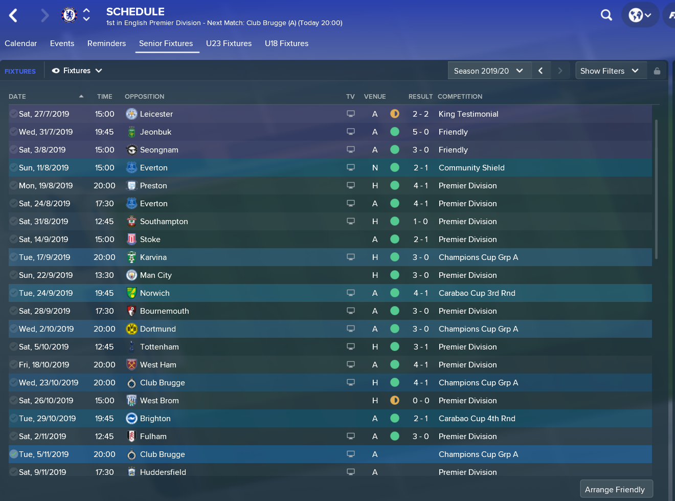 Before December, I was using a mix of a different 4-3-3 and 4-2-3-1, but I was not satisfied. So instead of a minor tweak, I revamped the roles and the team instructions. My season is going on and it seems to work really well. This save is in my second season at Chelsea as you can see in the transfers.