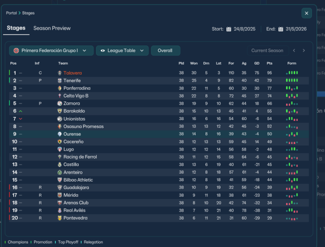 Originally created for Spurs in Demo. Later updated to the actual match engine and play tested in Talavera (3 league Spain). Straight promotion from 1 position. Tactic is rather basic as the team I played is mid table, players doesn't offer too much either. If you choose to play better team you can make adjustment to IP and OP instruction. Consider the fact that weaker team will struggle with high pressing game as the physical attributes are not as high.