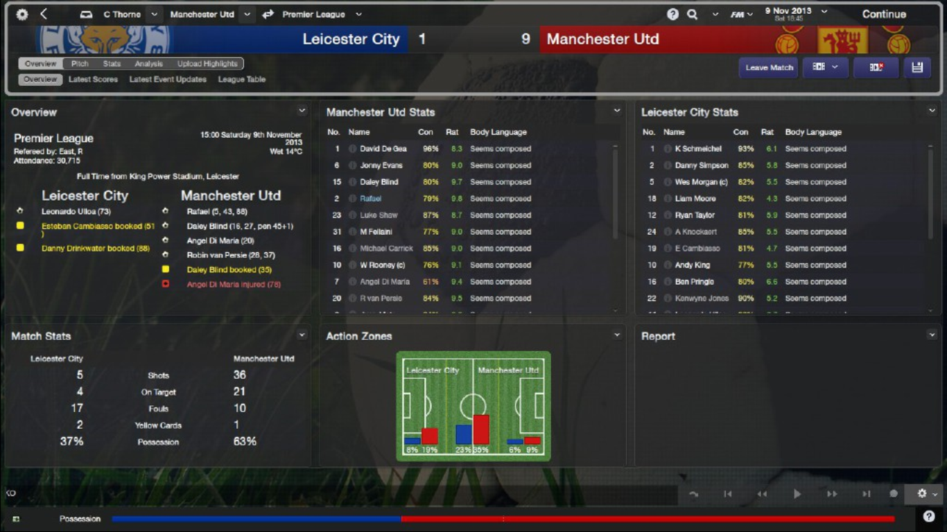 I thought I'd share my last game with you where we were winning 8-0 at half time!! Blind had a hatrick, RVP 1 away and so was Rafael! Leicster scored halfway through, and then finally Rafael again at the end. I'm loving this tactic so far