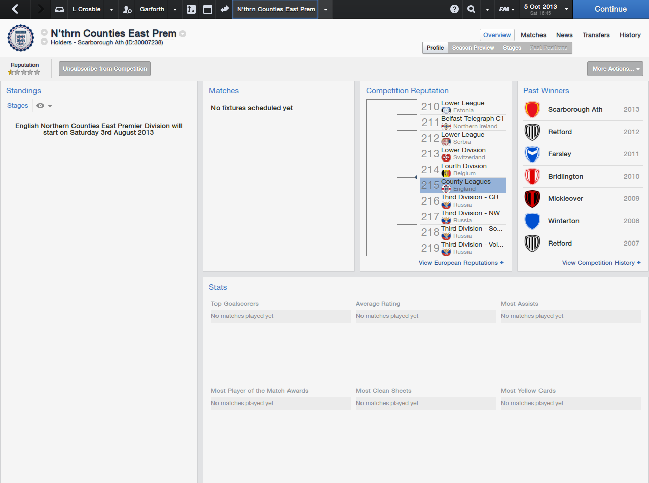 I stated earlier that I played with a team from the lowest league, St .Neots, and had the "no league starts after season ends"-bug.