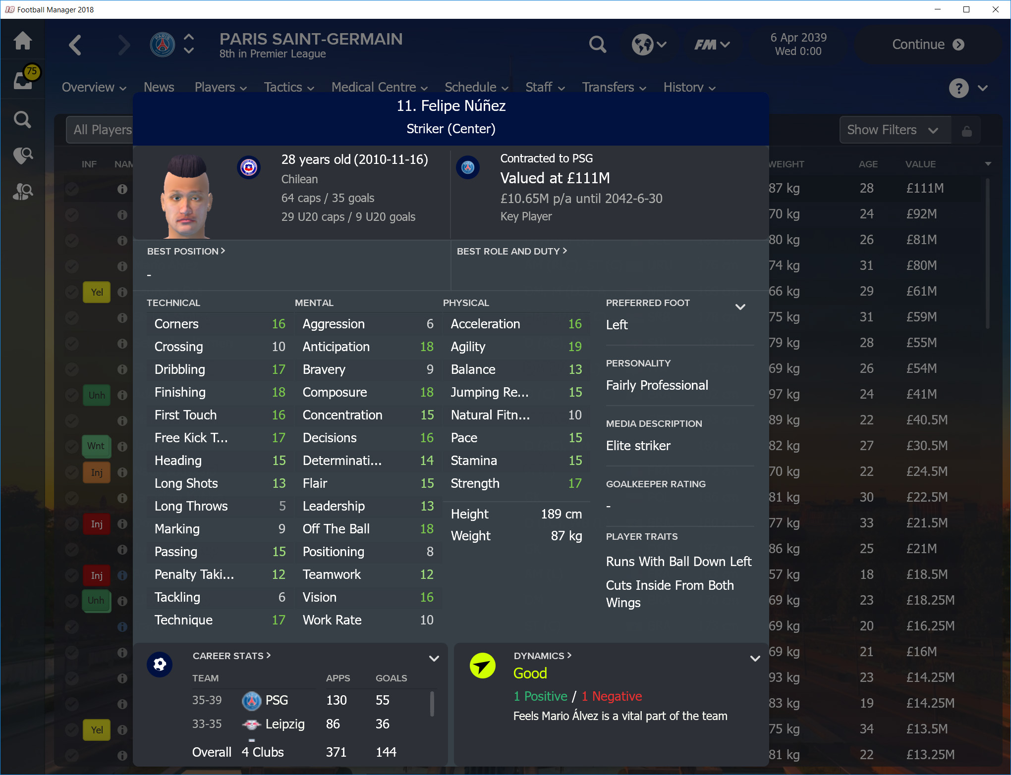 The "BEST" player in 2039 by CA/PA rating. The only player that reached >190 CA