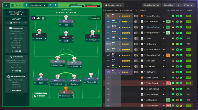 During my save with as monaco I started with a 4-2-2 tactic that later on developed into a more successful 4-2-3-1.