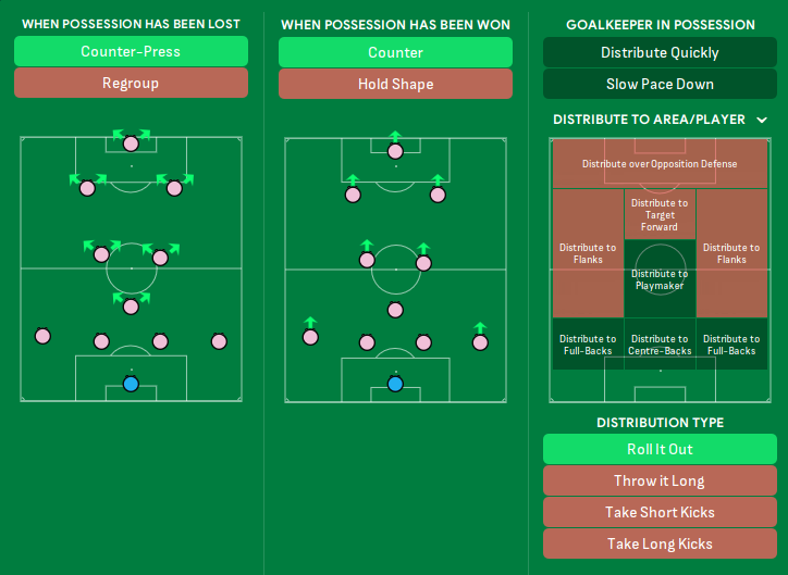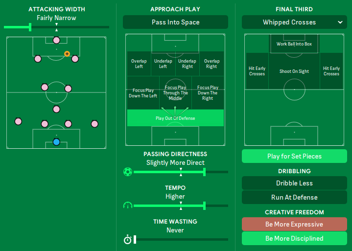 Attacking 4-3-2-1 / 4-1-2-2-1 route one tactic for FM 2024. Tested with Palermo.