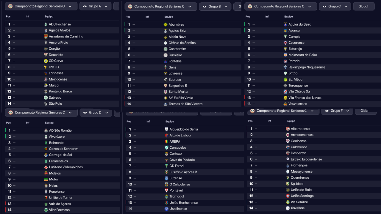 Campeonato Regional de Seniores C (NEW - Premium exclusive) - 84 teams, 6 groups (12 promoted, 24 relegated);