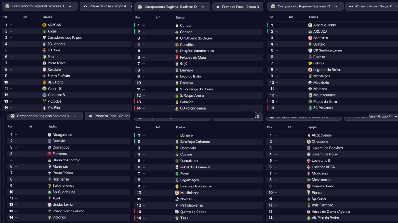 Campeonato Regional de Seniores D (NEW - Premium exclusive) - 84 teams, 6 groups (12 promoted, 24 relegated);