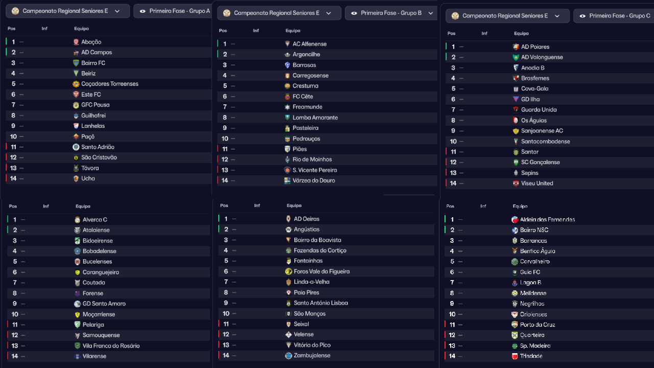Campeonato Regional de Seniores E (NEW - Premium exclusive) - 84 teams, 6 groups (12 promoted, 24 relegated);