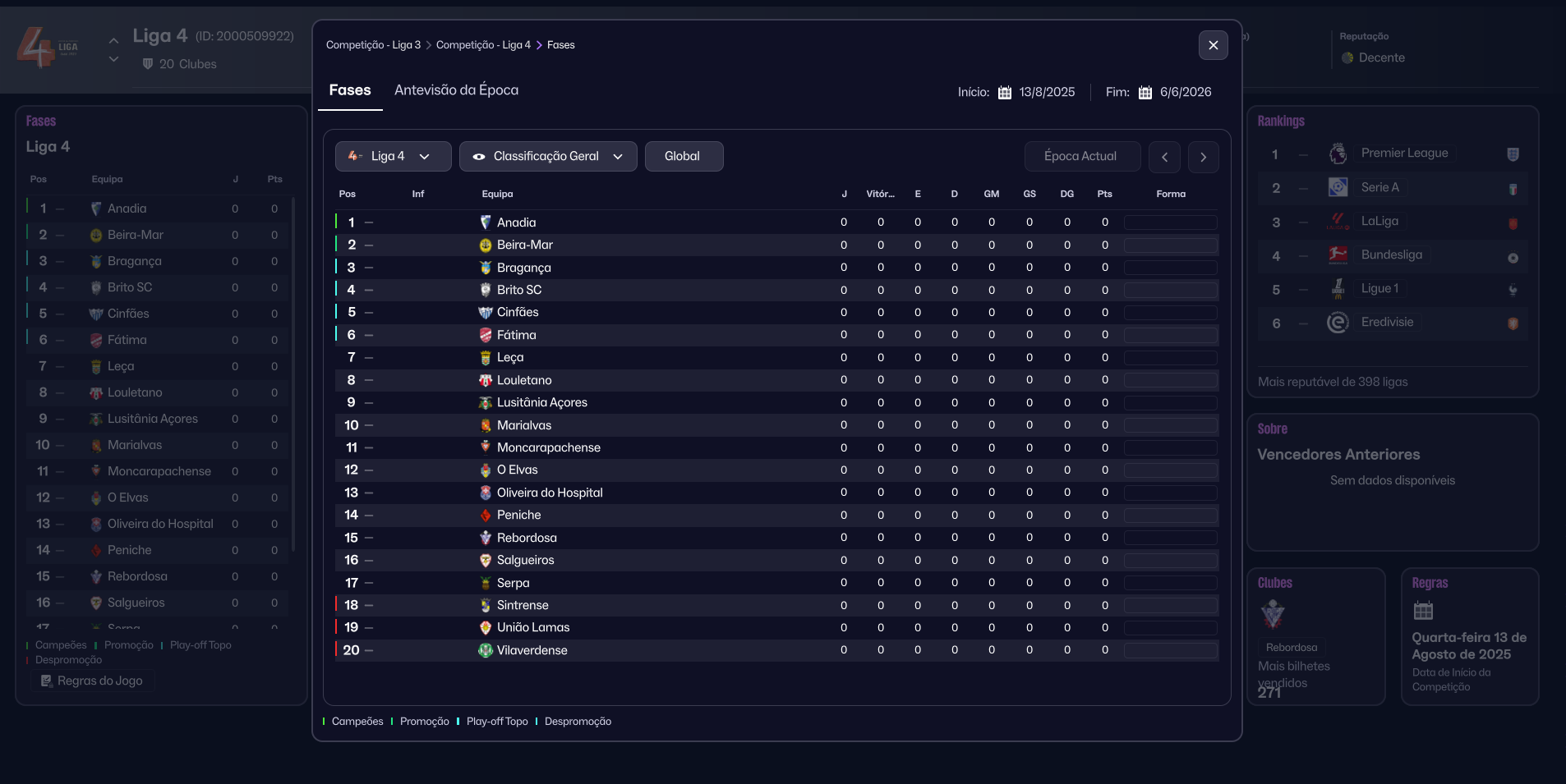 Premium version 1.0 - 15 tiers and 588 playable clubs, acording to the 2025/2026 season!