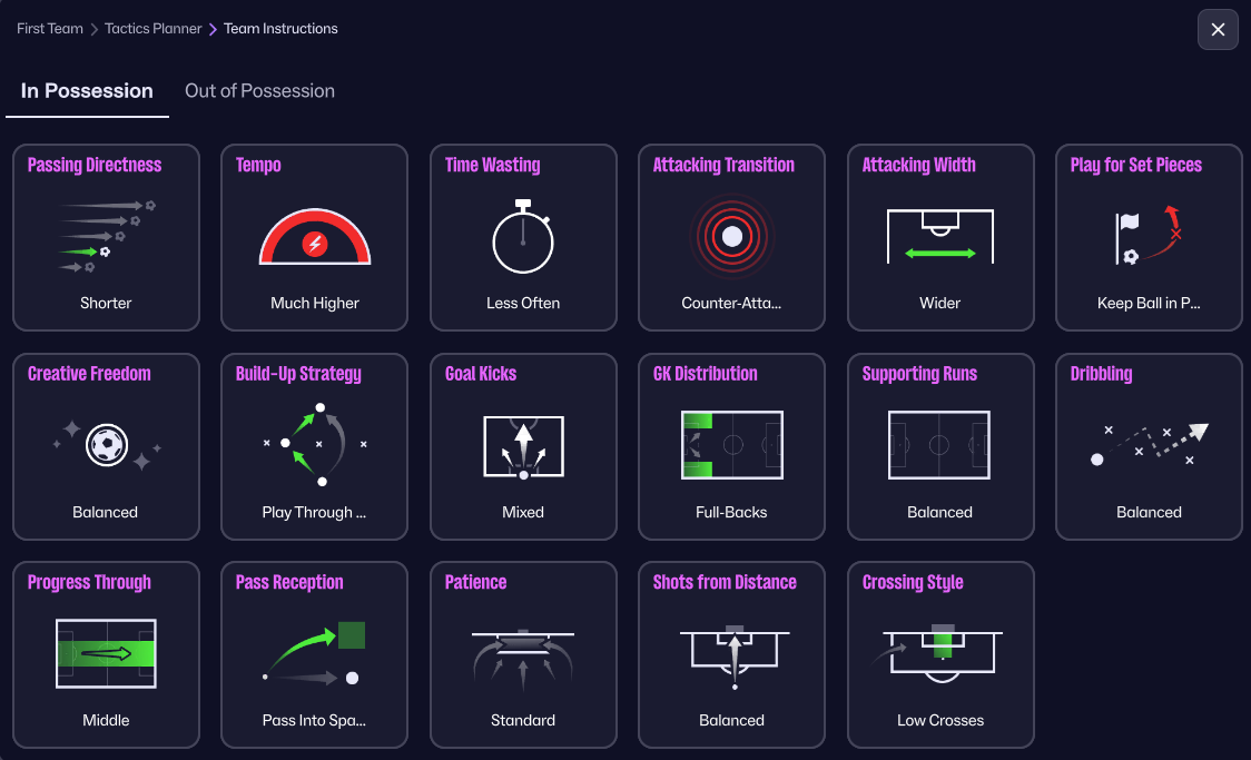 1 thing to notice is that you'll rarely get more than 50% possession due to constantly trying that through ball.
