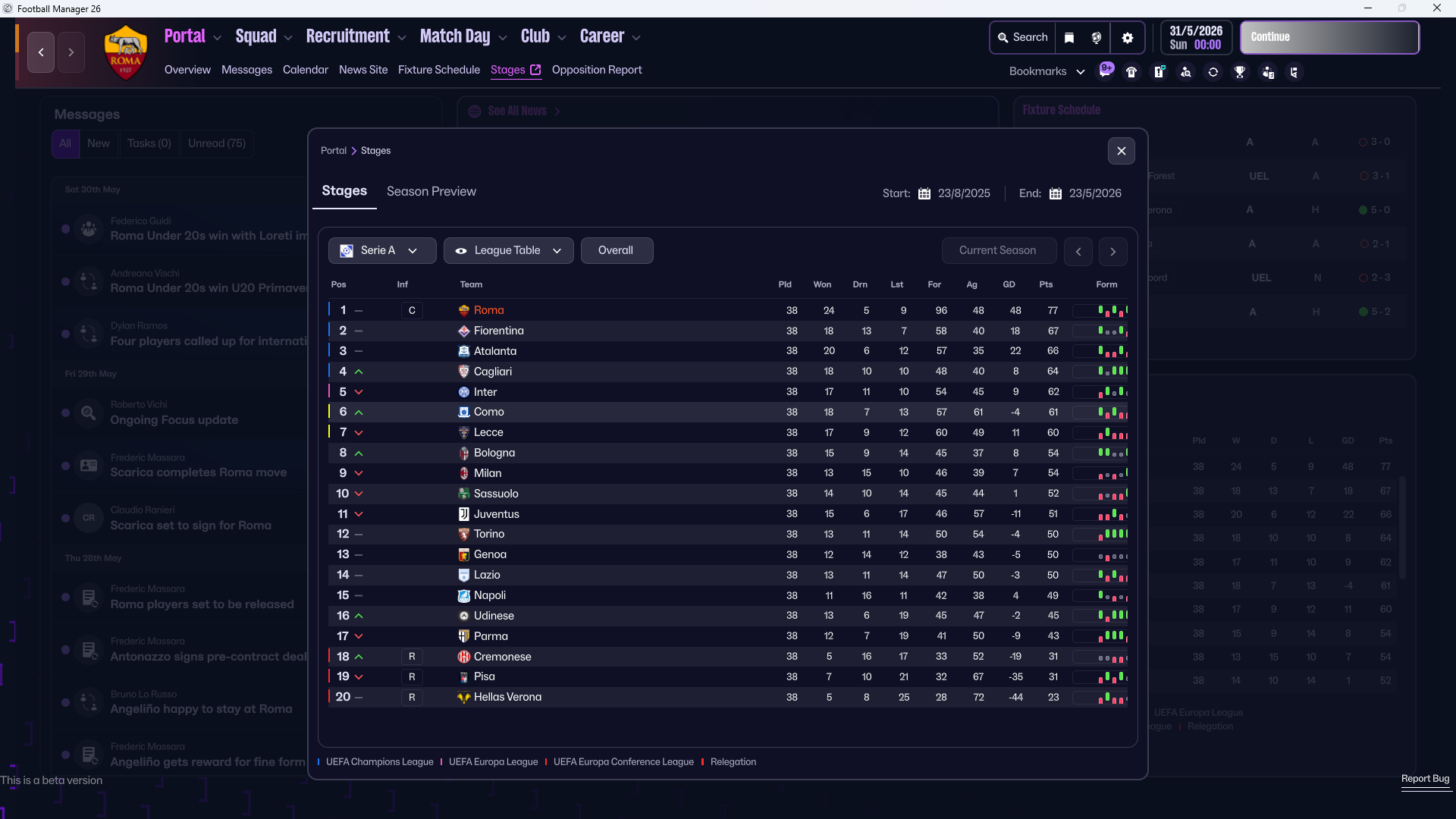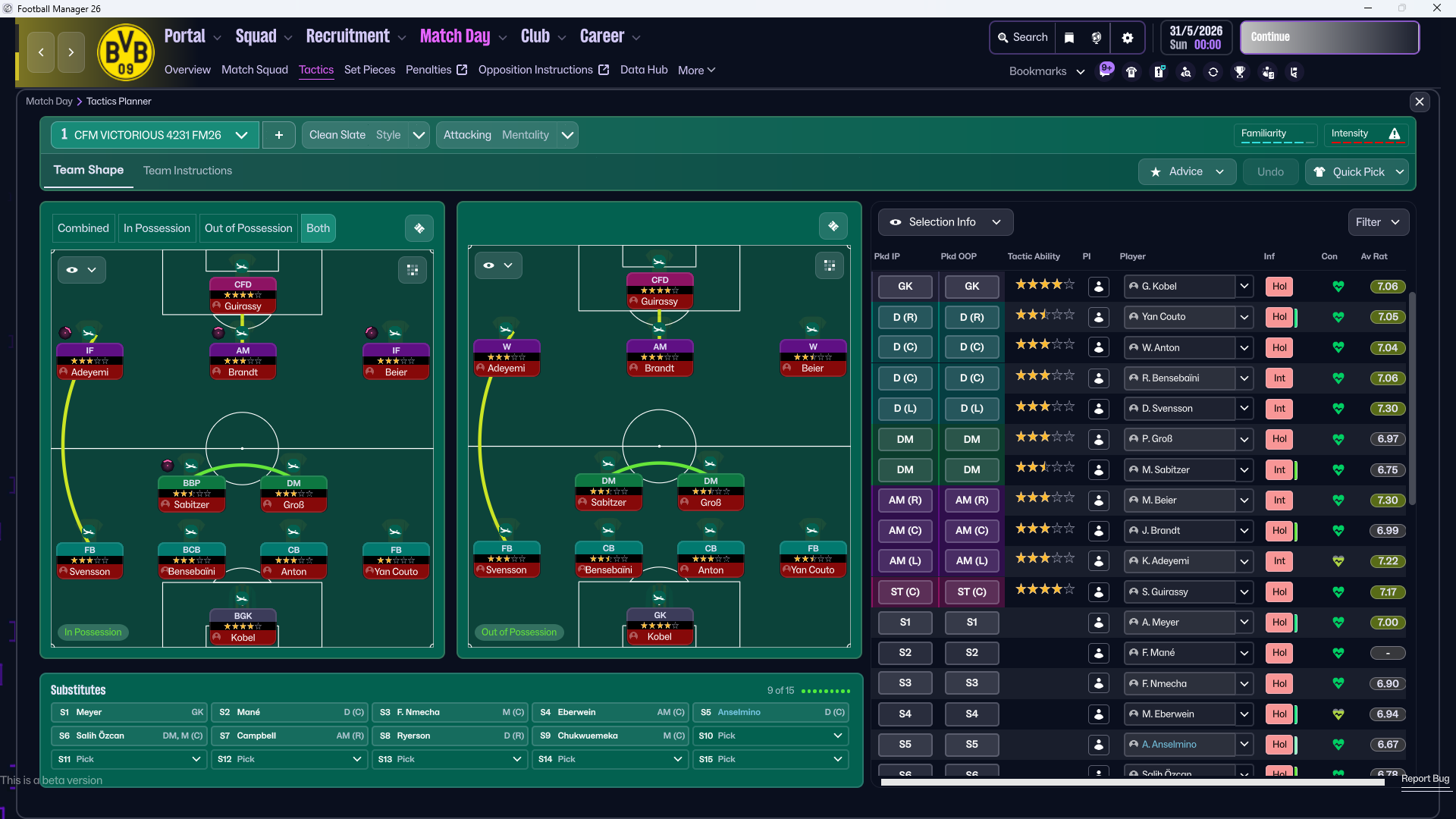Hello everyone, I have for you a 4231 FM26 tactic that performed really well across three different teams (AS Roma, Dortmund, and Arsenal)