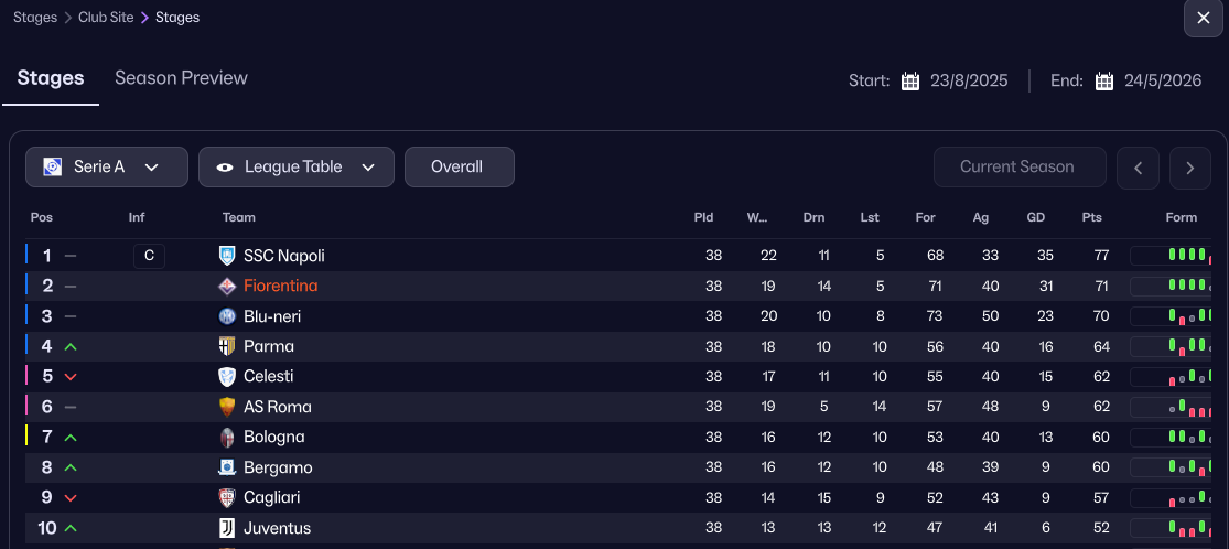 FIORENTINA - 2nd Serie A + UEFA Conference League WINNERS