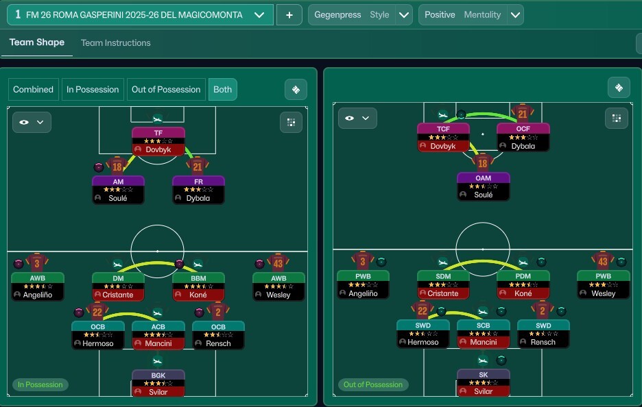 Today I want to introduce you to the tactical emulation for Football Manager 26 of AS Roma 2025/26 by Gasperini. Enjoy the viewing and reading.