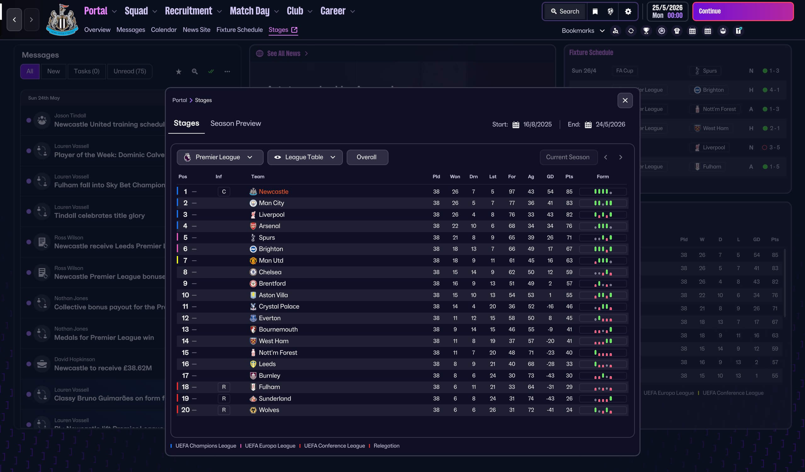 - Monitor player fitness to maintain peak performance.