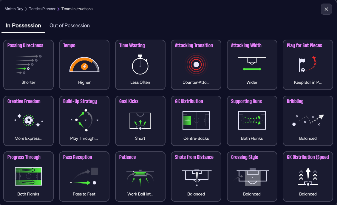 During testing, a small rotation of three closely related variants was used, each being a slightly tweaked version of the default tactic to account for game state and opposition. This mirrors how I naturally manage matches in long-term saves rather than relying on a single static setup. The variants are also shown in more detail in a separate video for those interested.