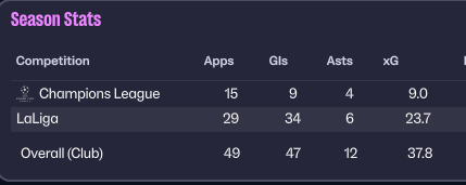 The system won the quadruple, averaging over 3 goals per game, while maintaining defensive stability. Despite an early injury setback to Robert Lewandowski during the La Liga campaign, the team recovered strongly and sustained form throughout the season.
