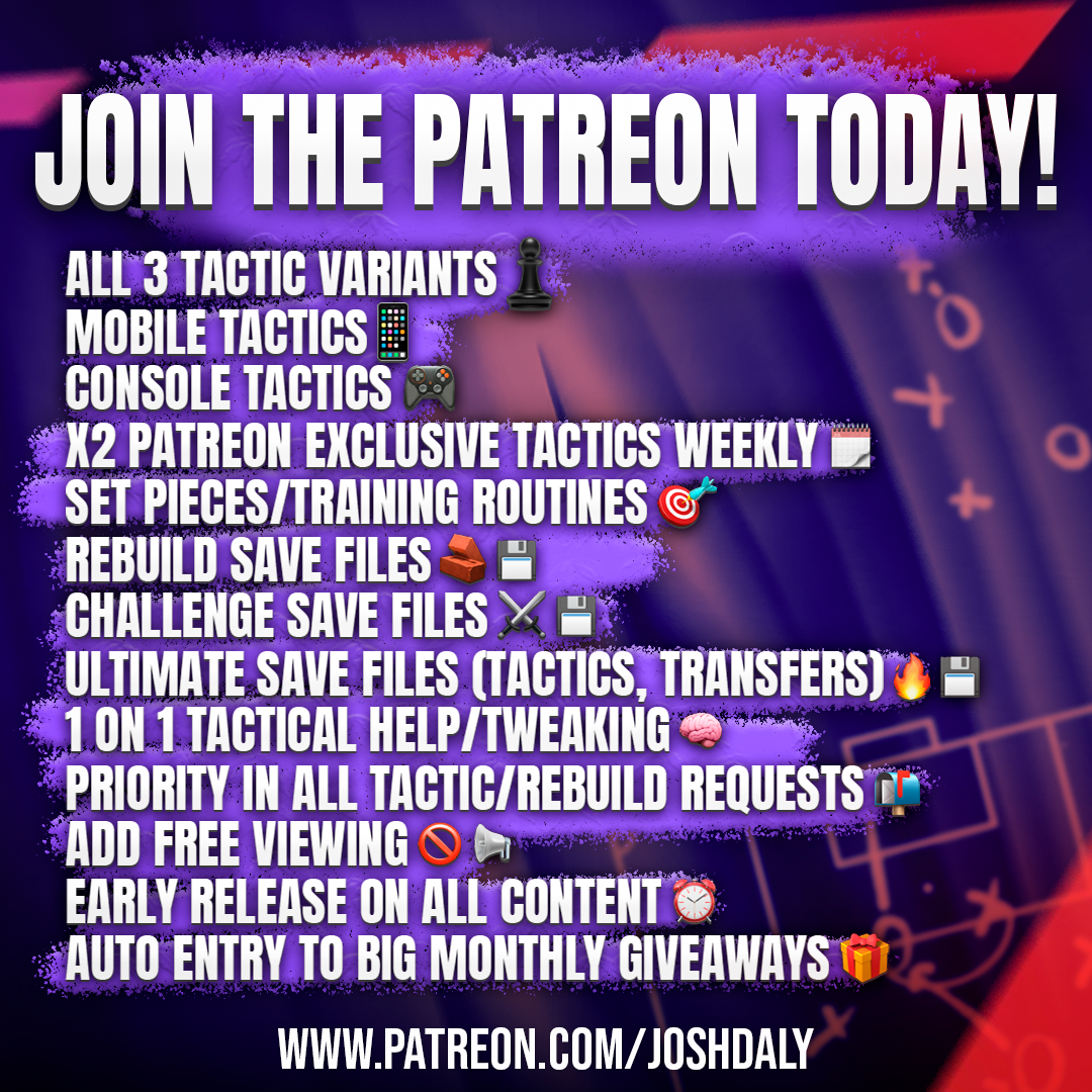 I’m Josh Daly, a full-time Football Manager content creator, working with the game on a daily basis. Because this is my full-time role, I spend 12–14 hours a day on Football Manager across testing, livestream saves, tactical development, and content production.