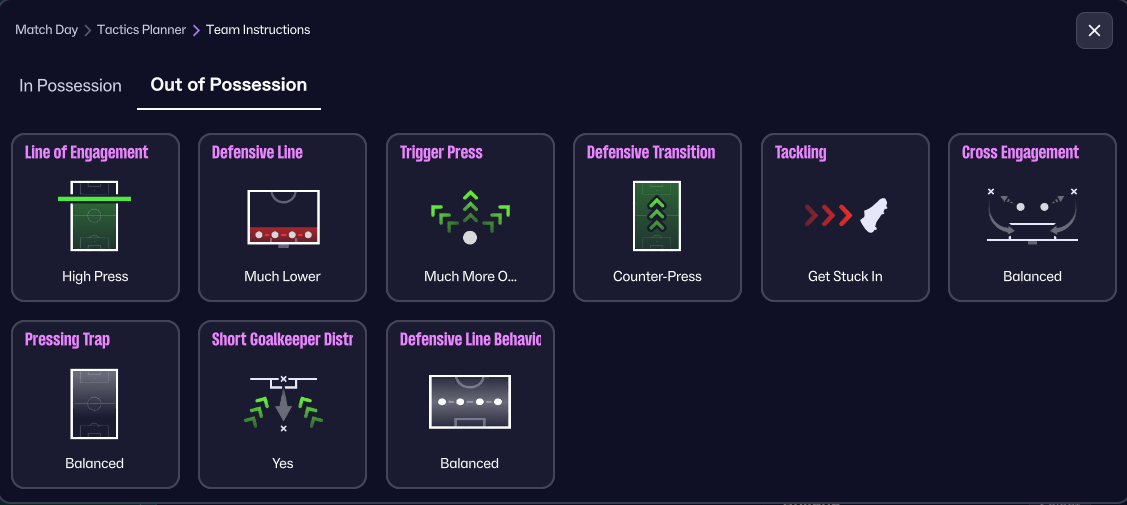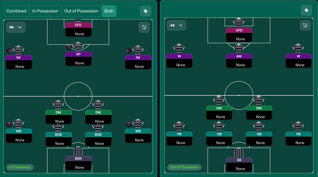 A rotation of three closely related variants was used throughout the season. These were small tweaks of the base tactic designed to suit different game states and opposition approaches, reflecting realistic long-term save usage rather than reliance on a single static setup.