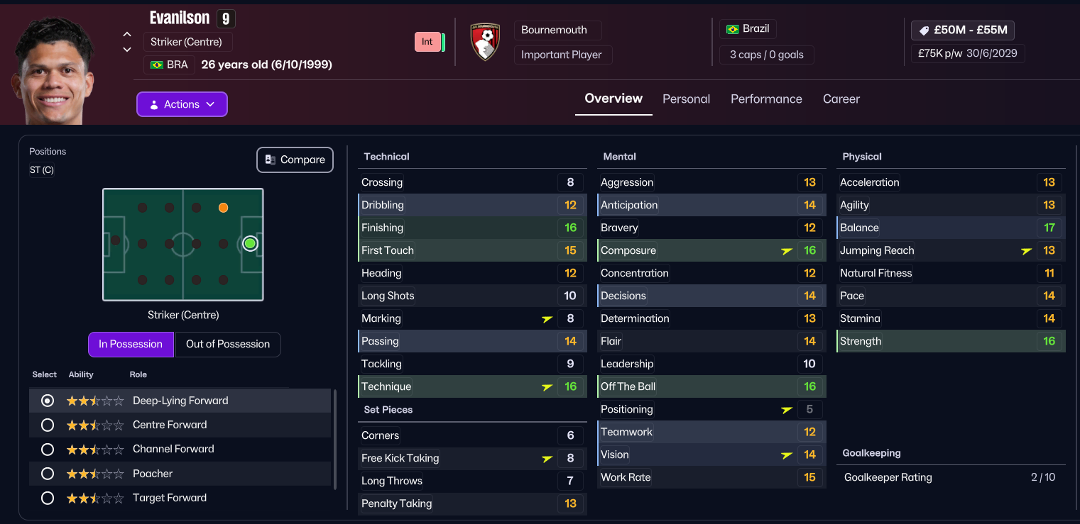 Evanilson was the standout performer within this system, acting as the primary focal point of the attack. His movement, finishing, and ability to lead the line played a major role in maintaining the tactic’s high scoring output across all competitions.