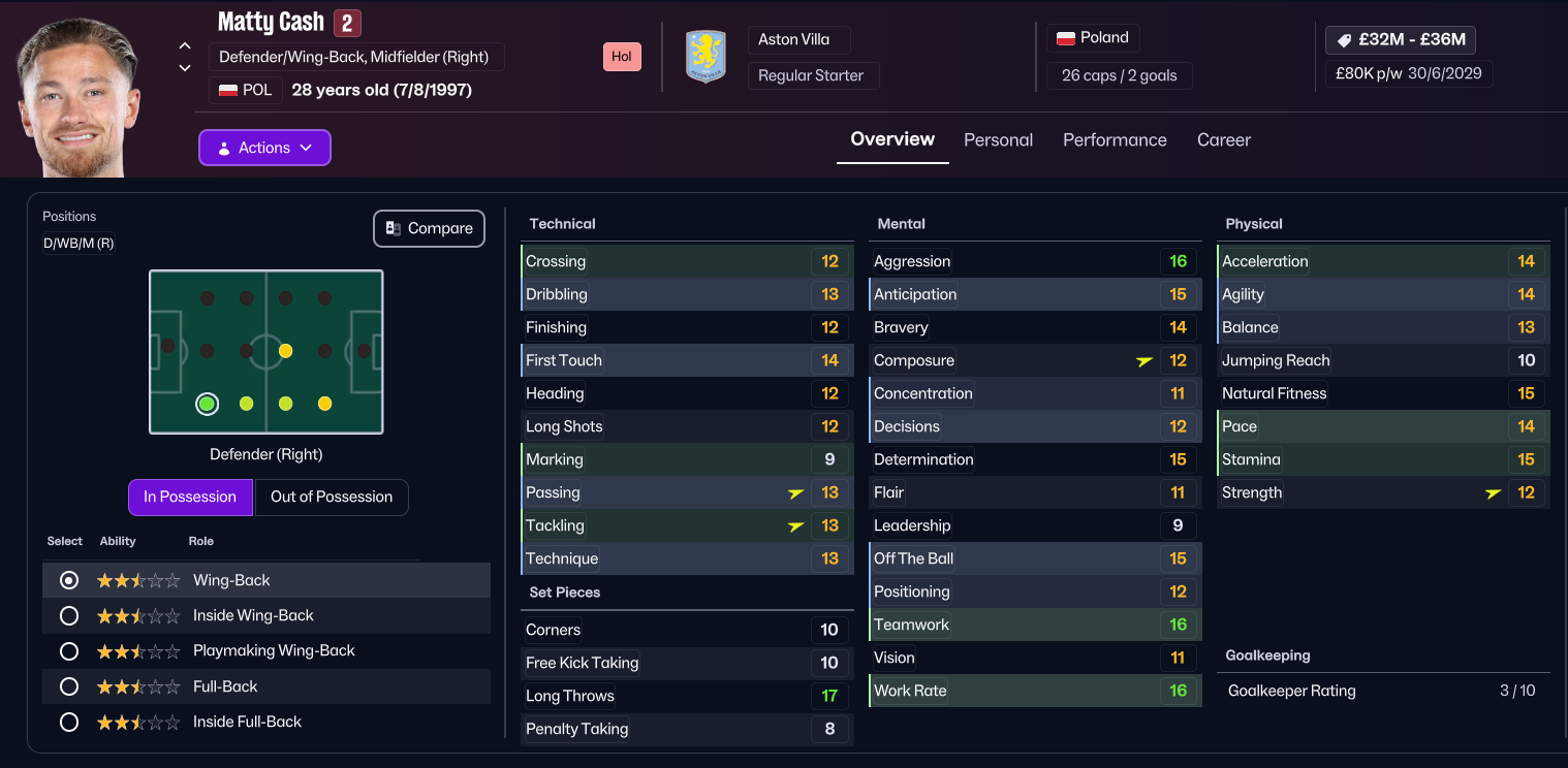 Matty Cash was the standout performer throughout the season and perfectly demonstrated the importance of attacking full-backs within this system.