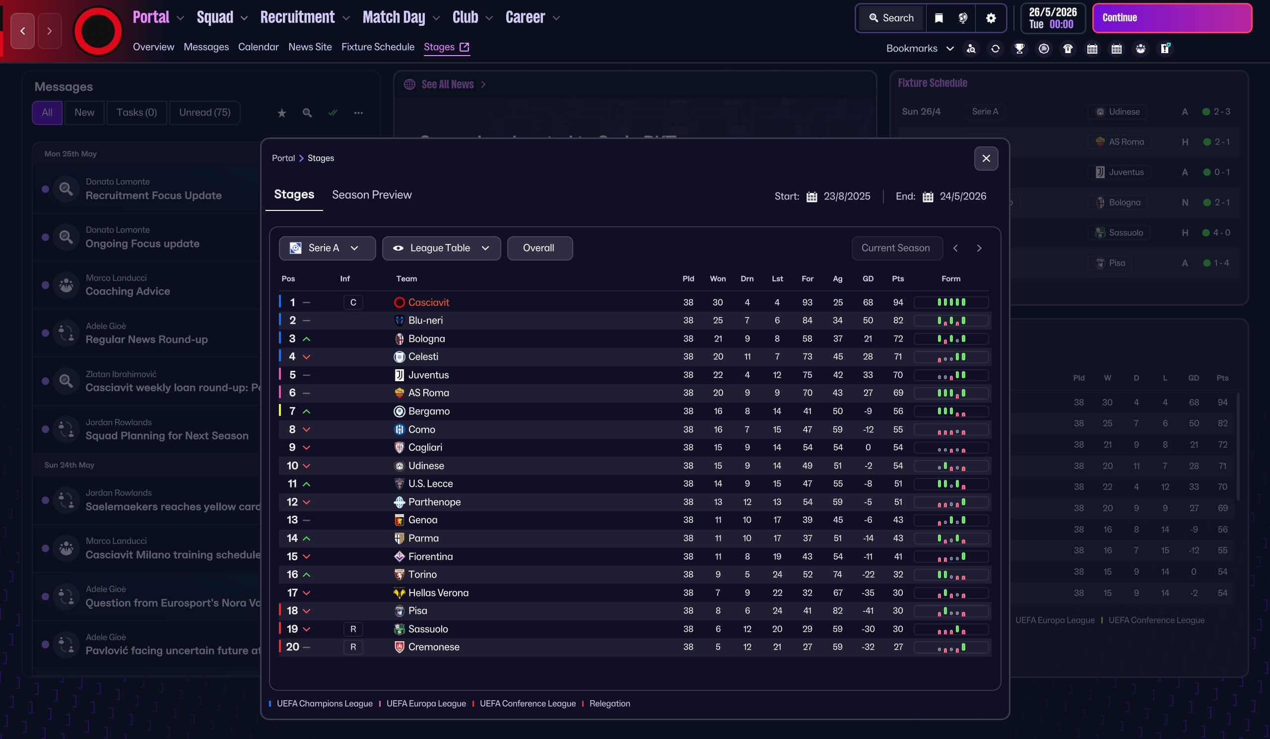 This system is built around fast transitions, intelligent movement, and controlled aggression. It creates overloads in wide areas, forces mistakes, and consistently generates high‑quality chances. The right winger and the wingback create a overlap which is difficult for the match engine to handle as discussed in the video. Whether you're managing a top side or a lower level project, the structure adapts well and produces reliable performances.