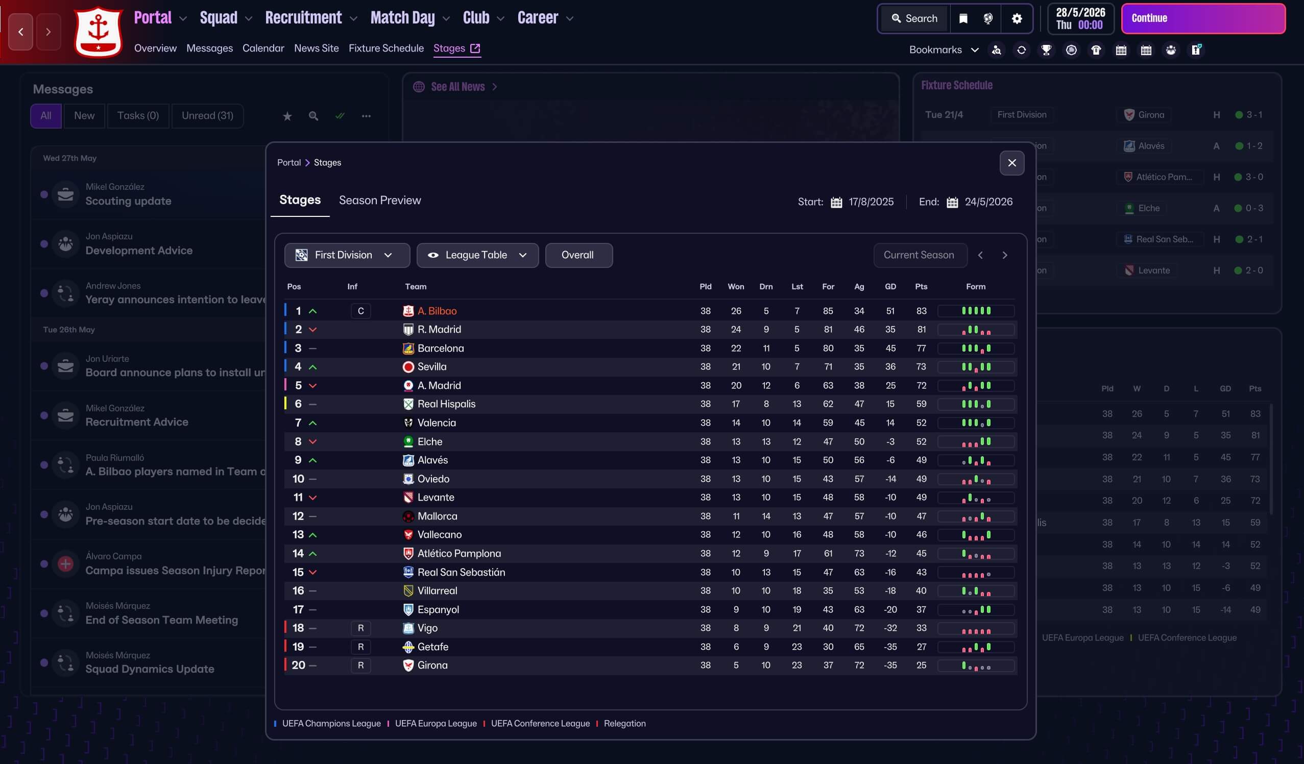 Monitor player fitness to maintain peak performance.