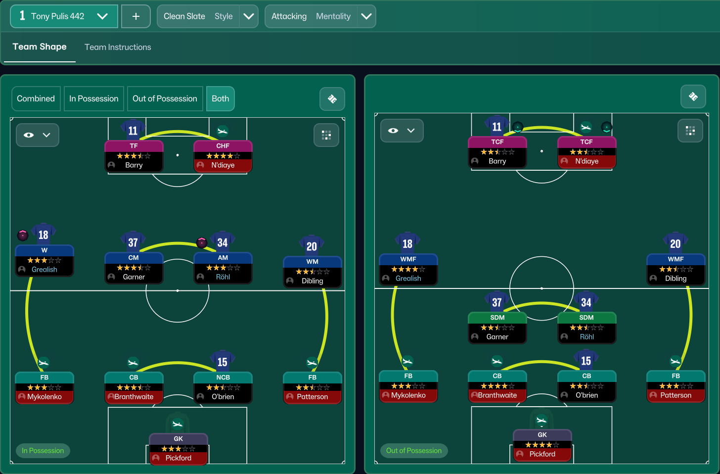The game plan is simple. After the initial press (disrupting GK distribution), we fall back to a low block and press hard once they reach our defensive third. In possession, we go direct by lumping it to the strikers or getting it to the wide players and hope they can create some magic.