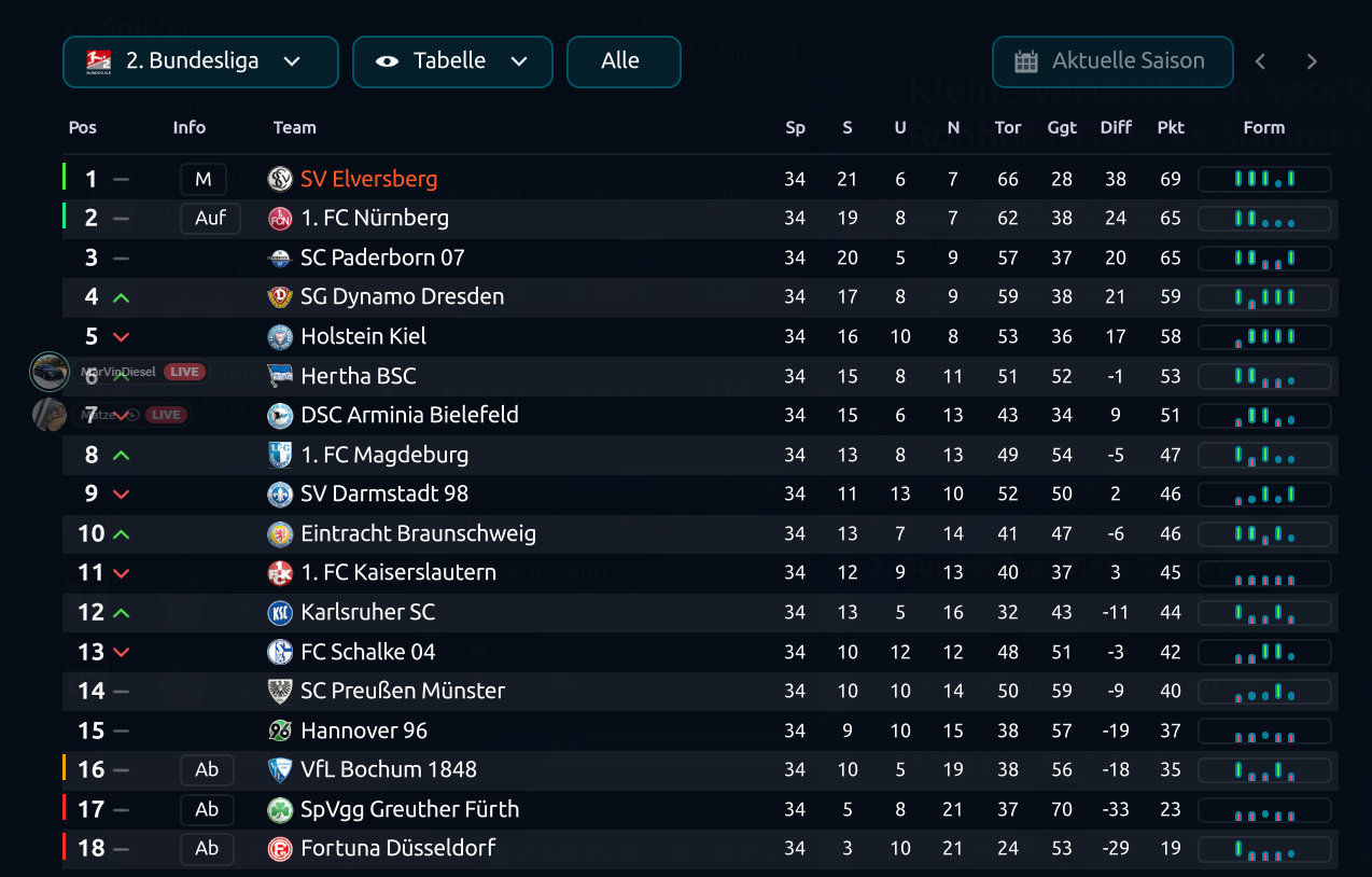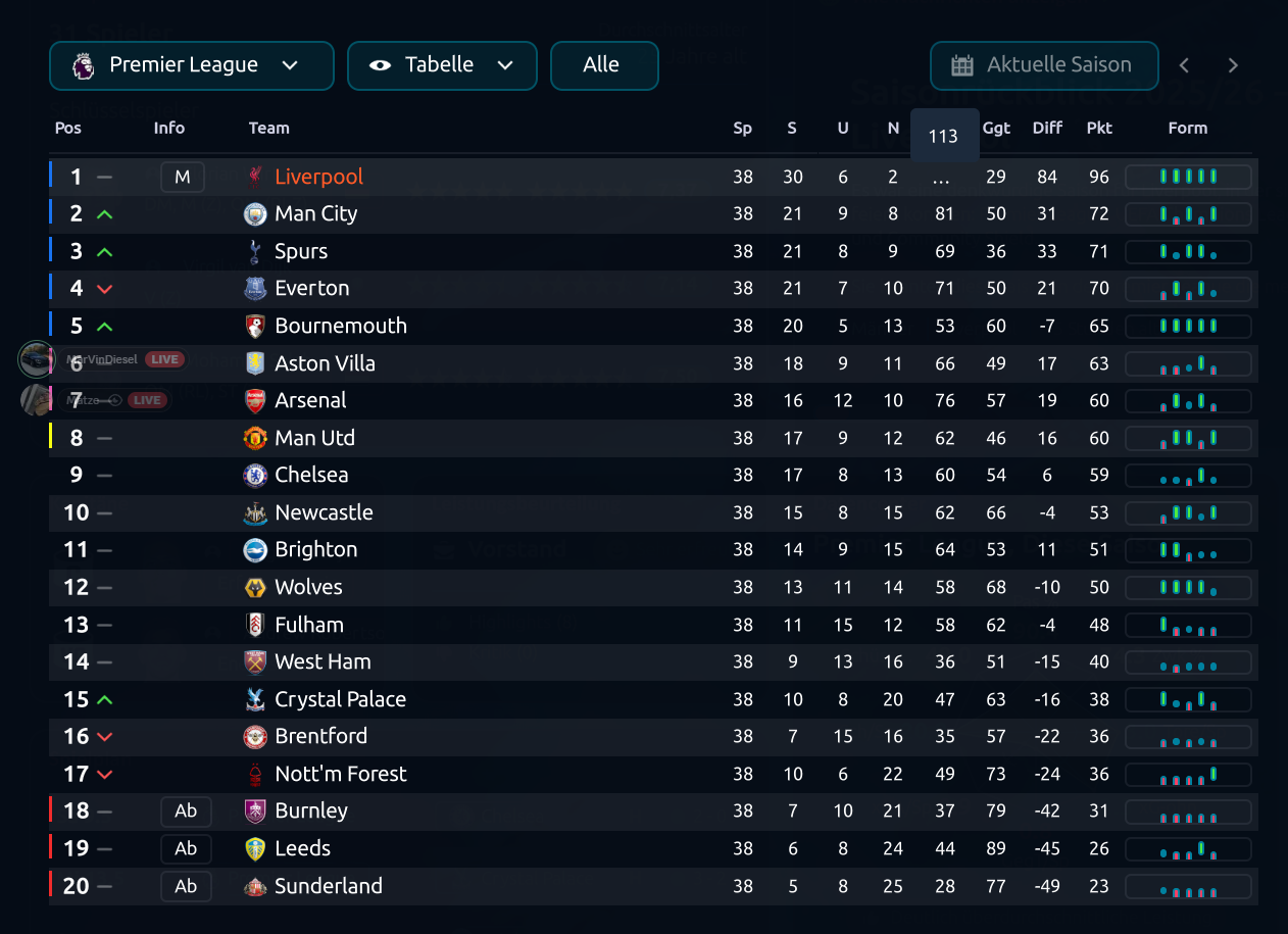 SV Elversberg 4-2-3-1 / Liverpool 96 points / 113 goals
