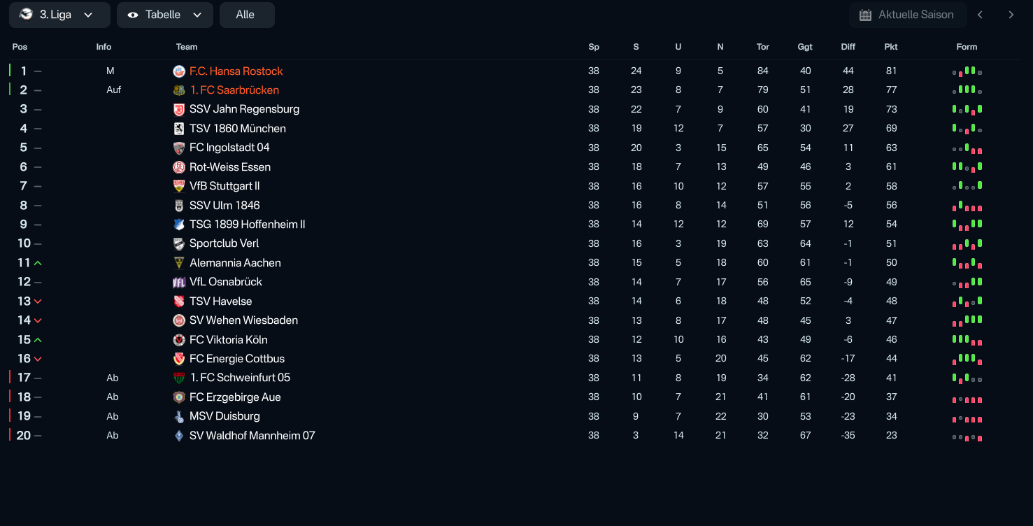 3. Liga - tested with both Hansa Rostock and 1.FC Saarbrücken