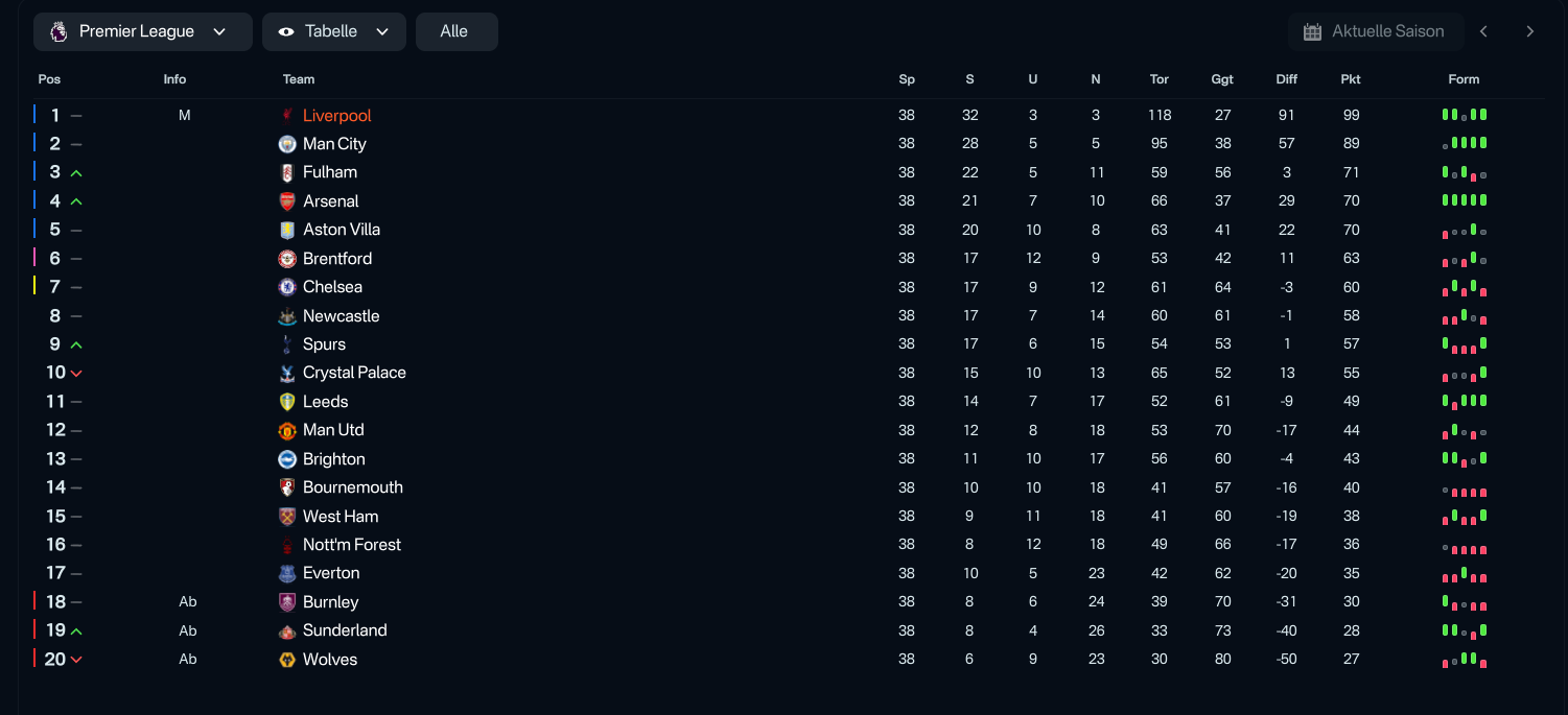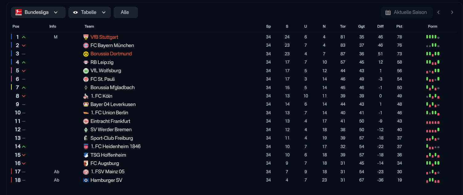 Bundesliga - tested with both Borussia Dortmund and VfB Stuttgart (expected to finish 5th!)