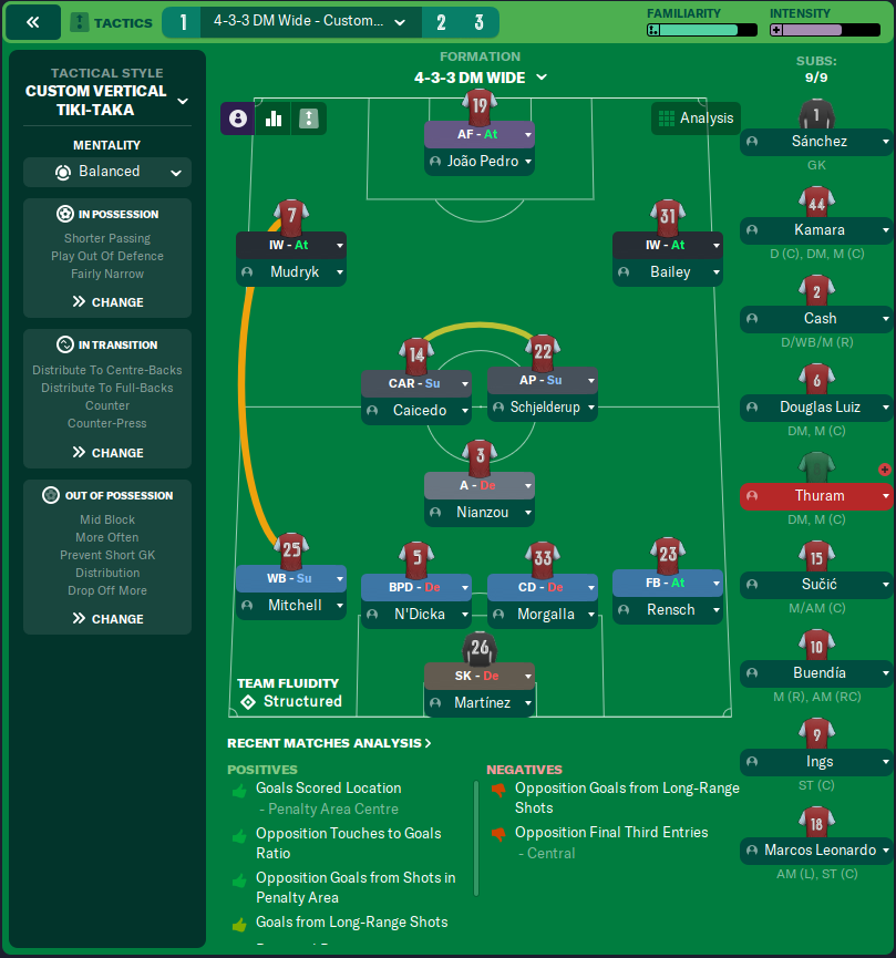 Our pacey wingers are well suited for this style of play and the midfield three with 1 defensive, 1 hybrid and 1 more advanced option seems to offer nice balance for the team.