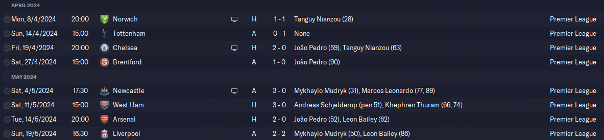 We had a great game against Arsenal and managed to beat them 2-0 with goals coming from João Pedro and Leon Bailey. We limited them to very few chances and were the deserved winners of that match.