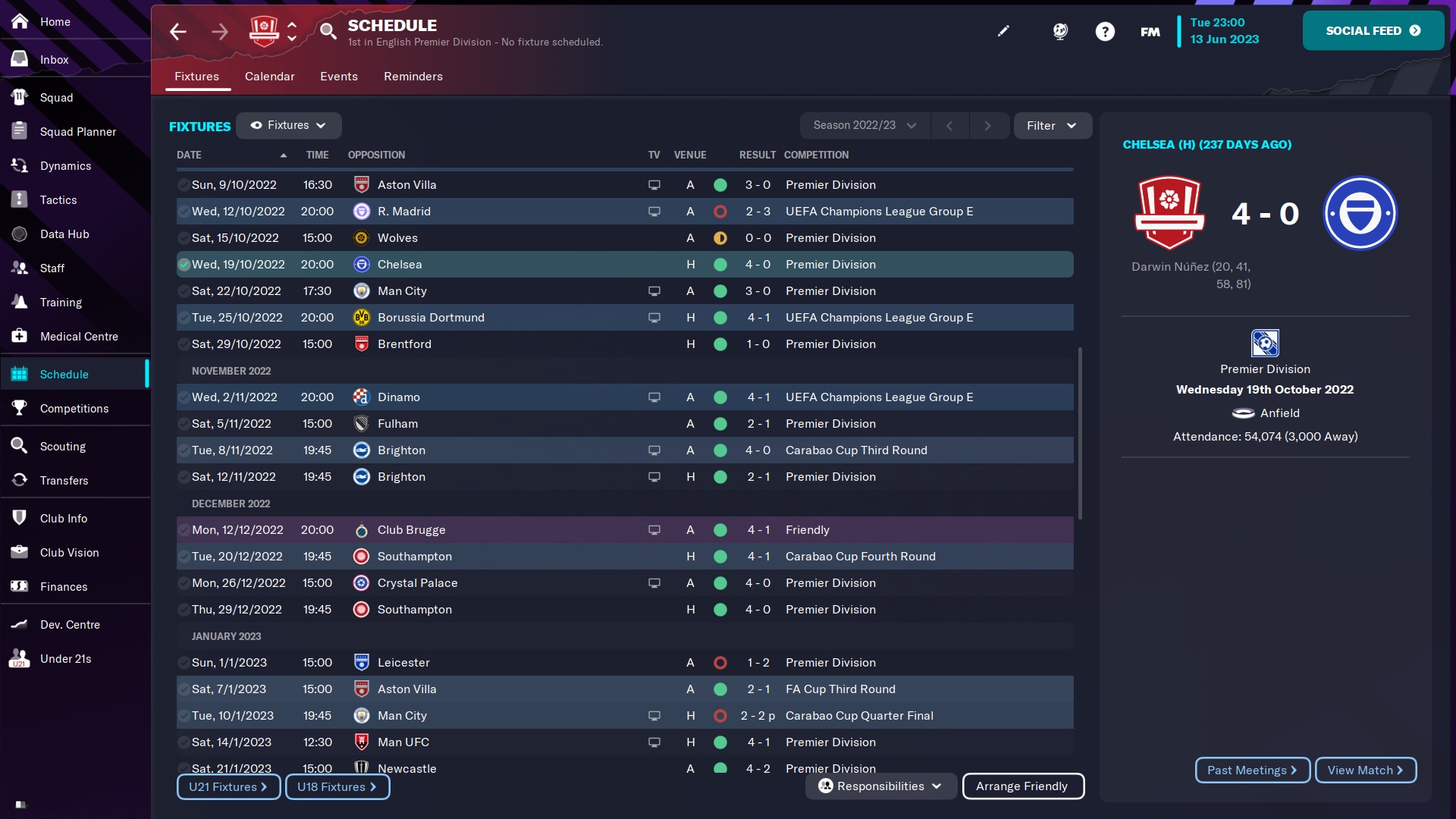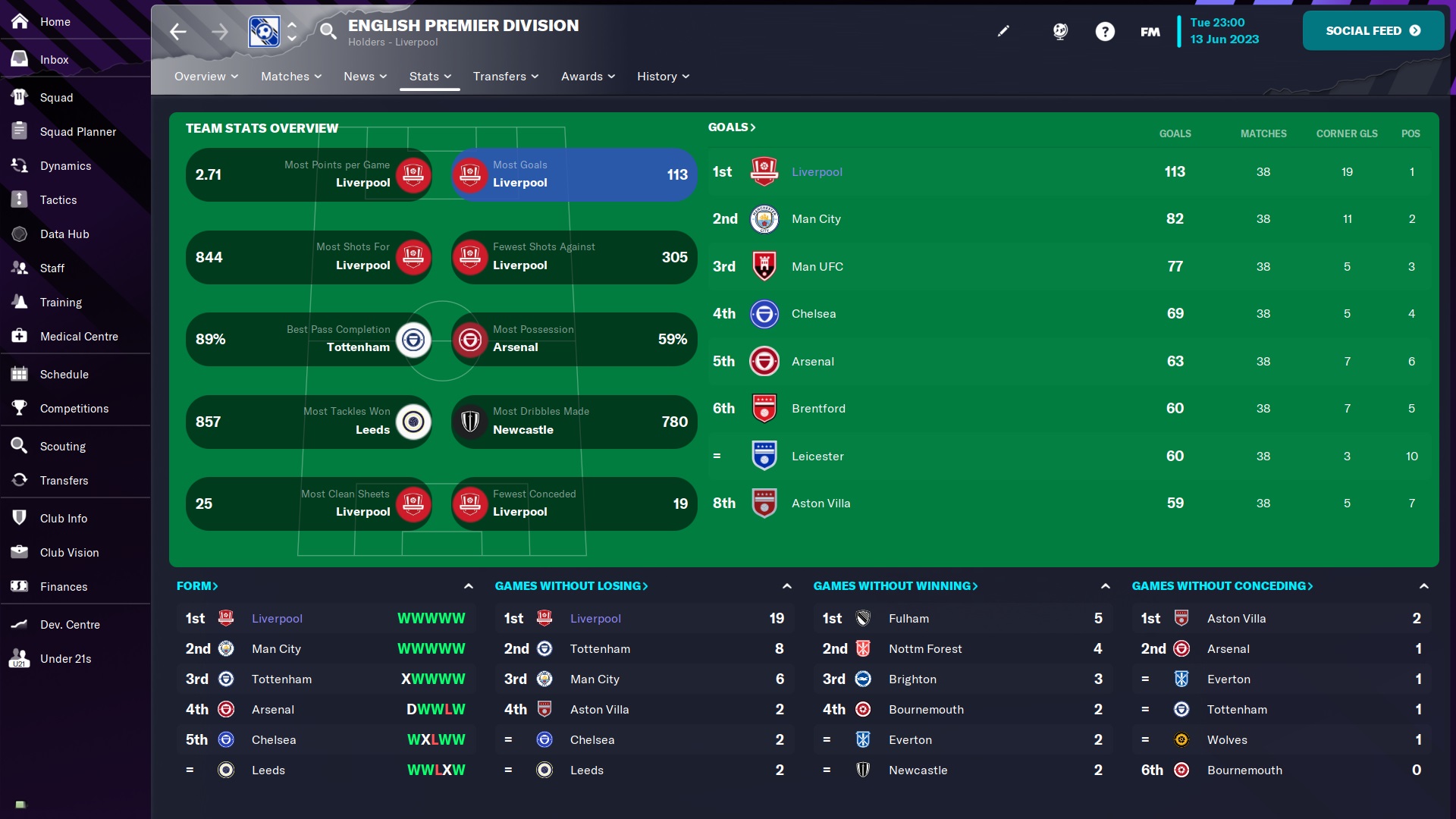 During the league we won 33 out of 38 scored 113 while only conceded 19 keeping 24 clean sheets with a goal difference of 94