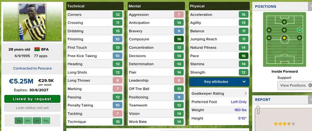 i brought him in at the begging of the 2022 season as a solid backup, however, instead of bench warming the Burkina Faso international managed 23 goals, 14 assists, 7 motm awards and an average rating of 7.87. He hasn't managed those stats from his previous two seasons however he has the achievement of winning Fans poty every season he's been here.