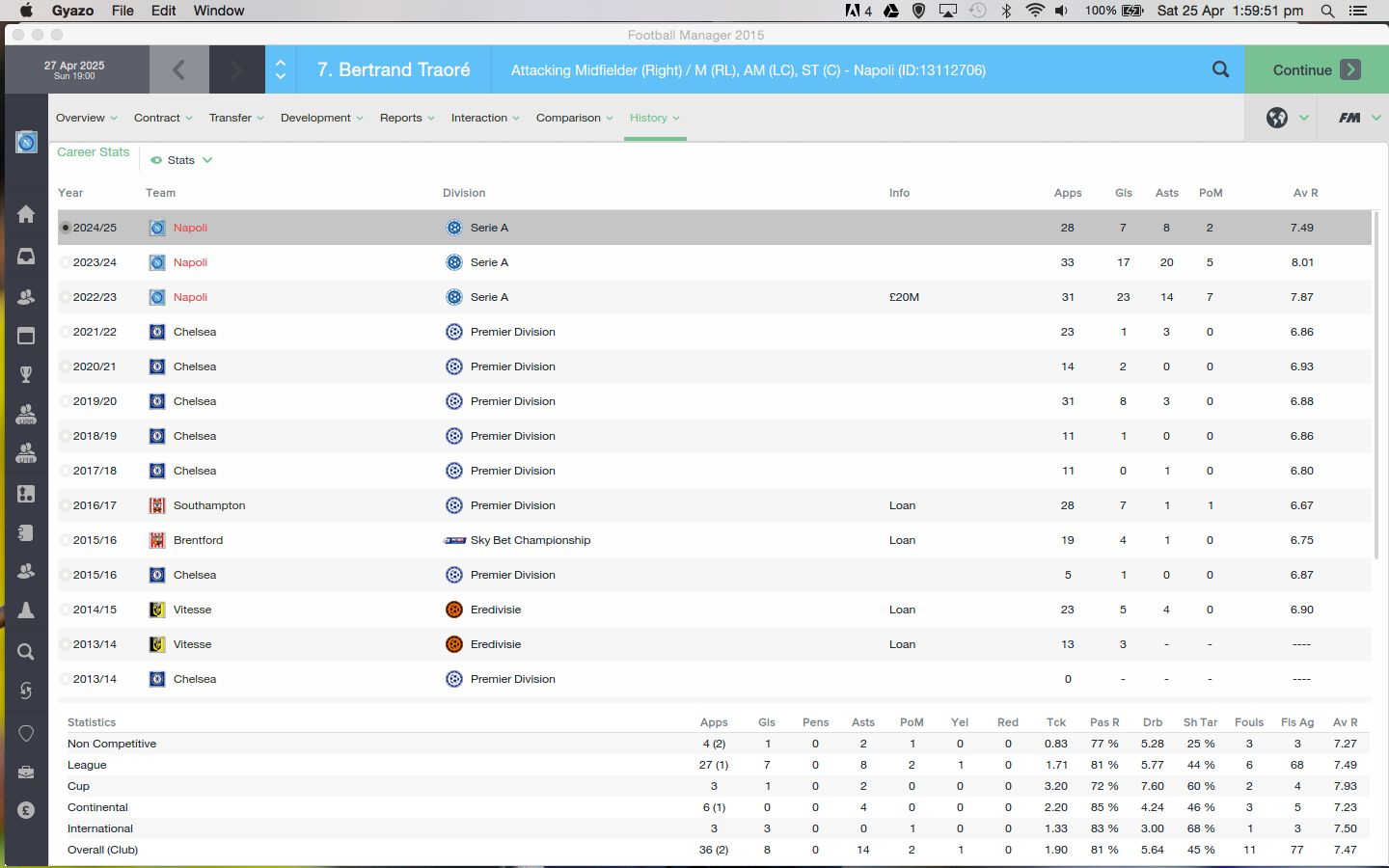 To finish, Traore is a fantastic option for clubs with lesser finances and he develops into an absolute machine 8.5/10 for me.